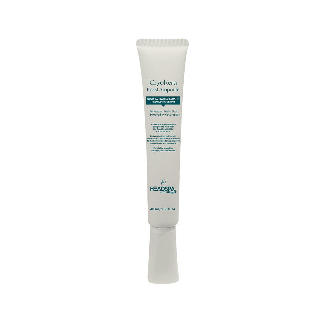 CryoKera Frost Ampoule is a cold-activated keratin rebuilding serum designed to work in synergy with the CryoKera ChillBar system. Developed as part of a controlled cooling protocol, it supports ingredient penetration and structural surface refinement without relying on thermal activation.